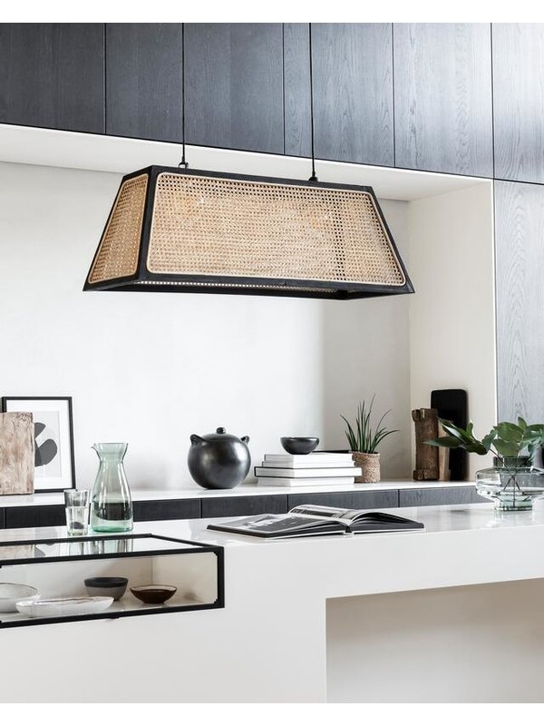 Maak kennis met onze geweldige Raffles Collection: een collectie vol webbing en zwart mindi-hout! De meubels uit deze collectie zijn stuk voor stuk echte blikvangers door de opvallende materialen. Het webbing, bijvoorbeeld, wordt gemaakt van gespleten rotan, een duurzaam en verantwoord product. Deze prachtige lampenkappen komen in verschillende maten. De medium variant heeft een afmeting van 35x100x40 cm. MUST Living hanglamp Raffles heeft een afmeting van 35x100x40 cm.