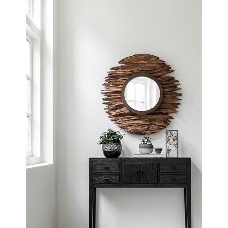 Spiegels hebben niet alleen een praktisch nut, maar het zijn ook perfecte decoratiestukken voor in de slaap-, woonkamer of zelfs hal. Handig om nog even snel te checken hoe je eruit ziet! Met spiegel Pure zal je gegarandeerd de aandacht trekken. De spiegel is namelijk gemaakt van de wortels van de teakboom. De wortels zijn onder de grond vervormd tot dicht hout en om deze reden opgegraven en gedroogd. Door het gebruik van deze speciale houtsoort is iedere lamp uniek en gaat er geen materiaal verloren! MUST Living spiegel Pure heeft een afmeting van 7xØ85 cm.