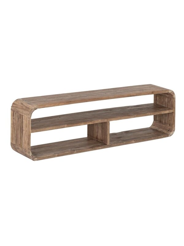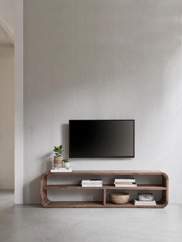 TV-meubel Corso heeft een open ontwerp, ideaal voor het opbergen en tonen van tv-apparatuur of decoratie. Door de natuurlijke variaties in de nerf en kleur van het hout is elk meubel uniek. De lichte, open structuur past zich eenvoudig aan verschillende interieurstijlen aan, terwijl de robuuste afwerking een warme uitstraling geeft. Ook geeft de ronde vorm van het ontwerp een vriendelijk beeld.