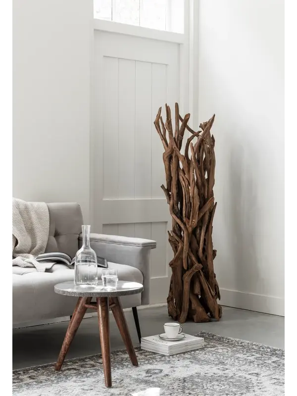 Vloerlamp Spot heeft een wel heel bijzonder uiterlijk. Deze is namelijk gemaakt van de wortels van een gekapte teakboom. De wortels zijn onder de grond vervormd tot dicht hout met een gouden glans en om deze reden opgegraven en gedroogd. Doordat de wortels zijn gebruikt om deze prachtige lamp te maken, gaat er geen enkel materiaal verloren en zijn de lampen allemaal geheel uniek! MUST Living vloerlamp Spot heeft een afmeting van 150xØ30 cm. Bekijk ook eens de andere lampen van teakwortel!