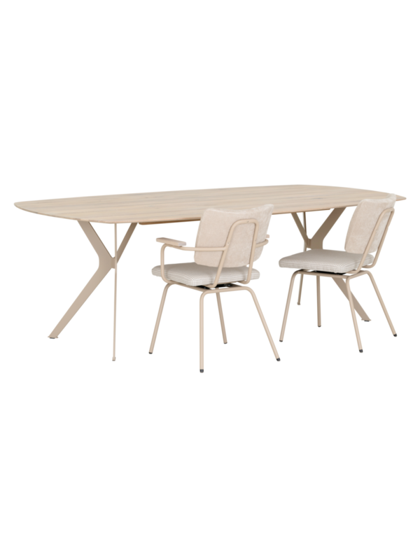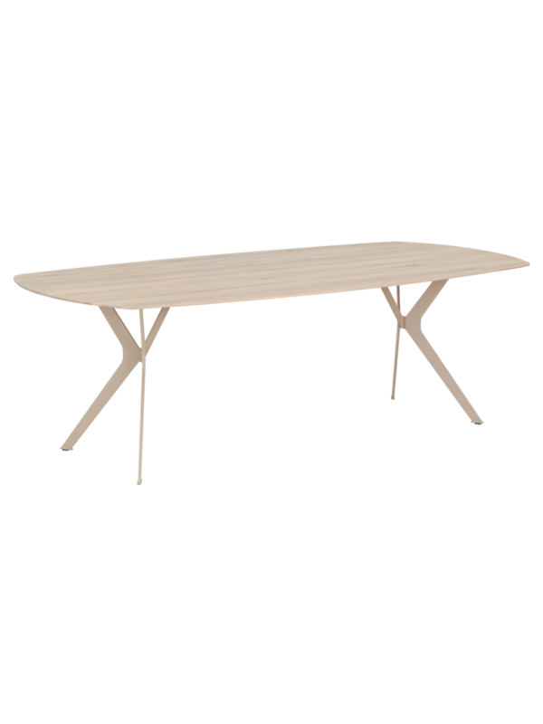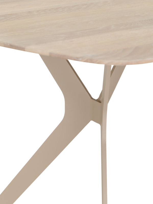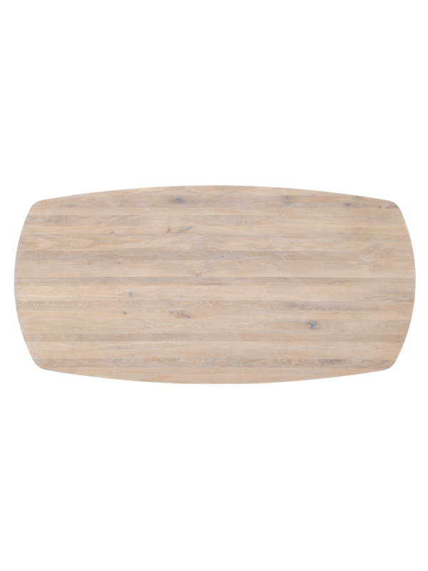 Het tafelblad heeft een verfijnde deens ovale vorm met een verjongde rand, wat de tafel een moderne en luchtige uitstraling geeft. Kies uit drie afmetingen, zodat er altijd een variant past bij jouw eethoek.
