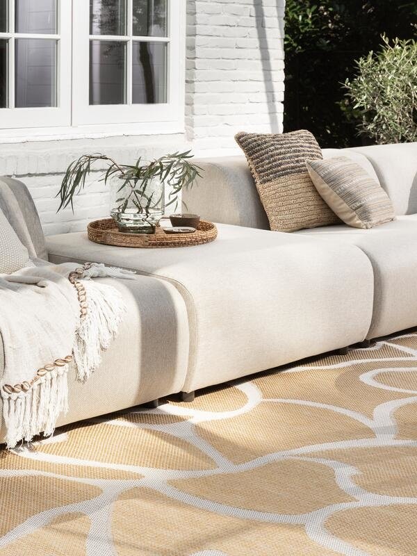 De elementen van outdoor bank Bay zijn bekleed met een 100% waterdichte, antibacteriële en sneldrogende stof. Bay's frame is gemaakt van sterk, watervast multiplex. Verder is de outdoor bank voorzien van uniek ‘dry fast' foam, waardoor vocht sneller en beter verdampt. De speciale vormgeving, waarbij er spleetjes tussen de kussens zijn opengelaten, zorgt ervoor dat water optimaal kan wegstromen. Omdat onze stoffen uv-straling bestendig zijn, is kans op verkleuring minimaal en wordt de stof niet heet in de zon.