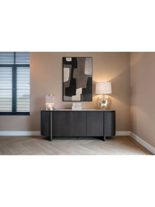 Het Richmond Dressoir Langford in bruin is een warme en praktische toevoeging aan de woonruimte. De combinatie van eiken fineer en keramiek geeft het meubel een natuurlijke en duurzame uitstraling die gemakkelijk past in verschillende interieurs.