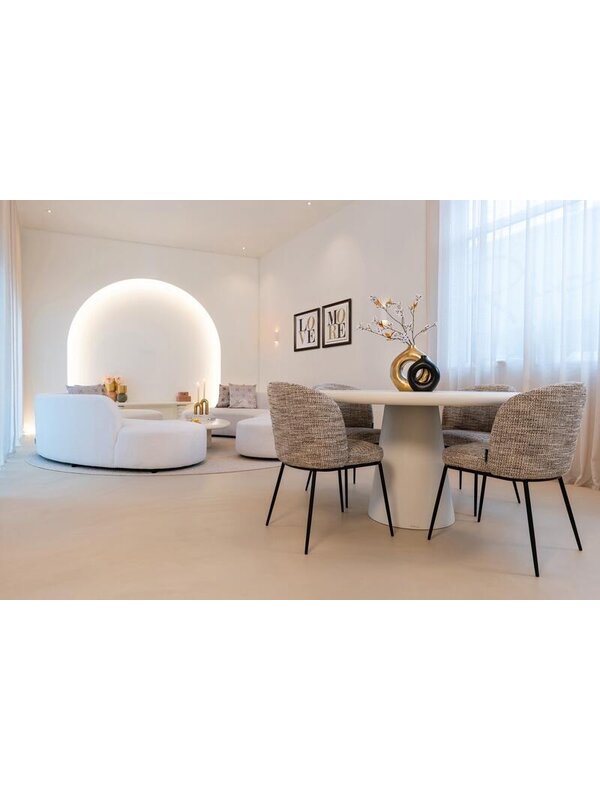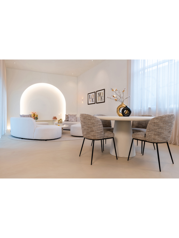 De ronde Eettafel Bloomstone combineert moderne elegantie met natuurlijke charme. Het witte tafelblad, gemaakt van pleisterwerk op stevig hout, rust op een stijlvolle middenpoot die zorgt voor een strak silhouet én solide basis.Dankzij het minimalistische ontwerp past de tafel moeiteloos in zowel moderne als landelijke interieurs. Perfect voor lange diners of dagelijkse maaltijden: Bloomstone brengt sfeer, ruimte en stijl samen aan tafel.