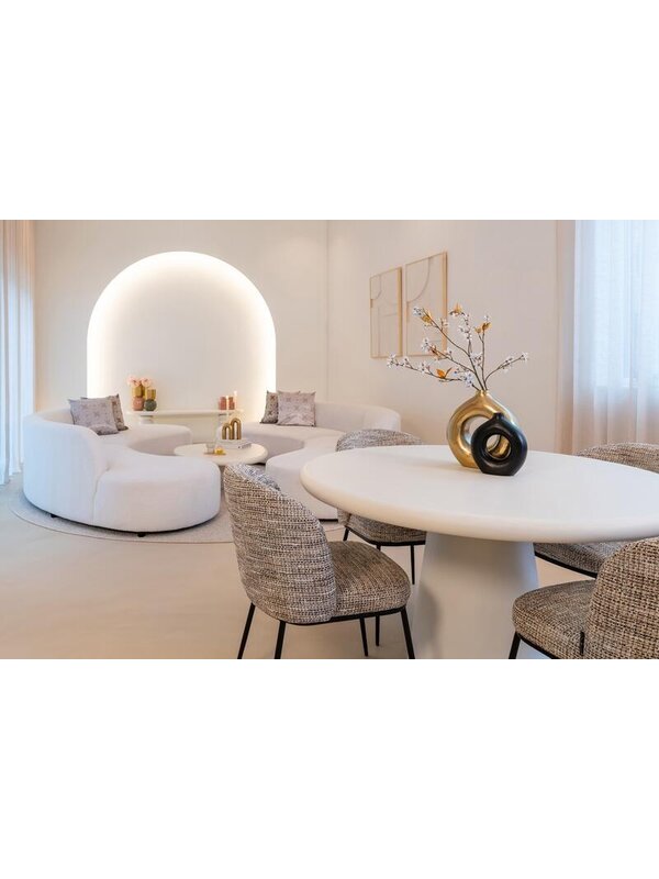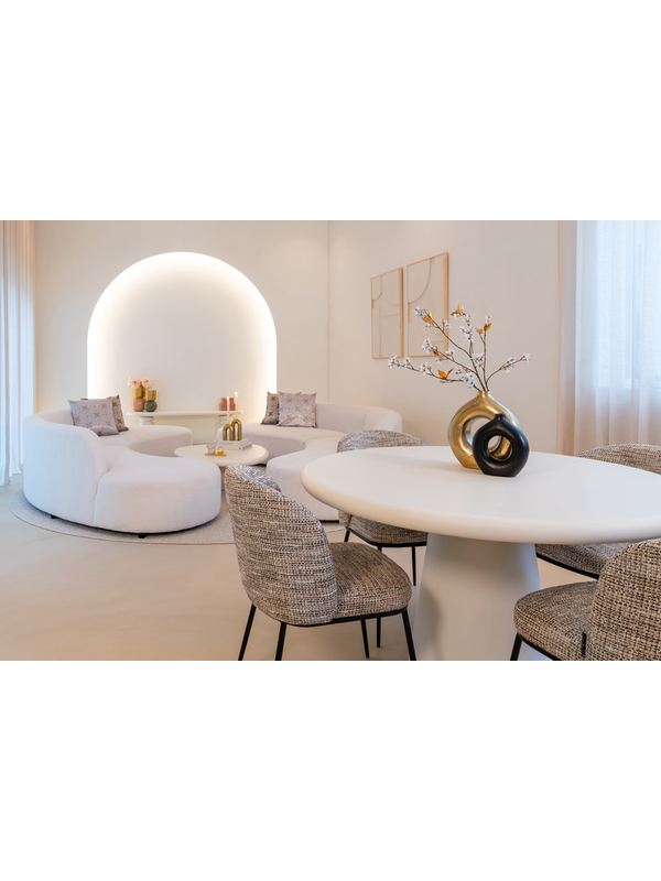De Bloomstone collectie van Richmond Interiors staat voor modern minimalisme met een zachte twist. Elk meubelstuk is uitgevoerd in helder wit en kenmerkt zich door vloeiende, organische vormen. De strakke lijnen en rustige uitstraling maken deze collectie perfect voor een eigentijds interieur waarin eenvoud en elegantie centraal staan