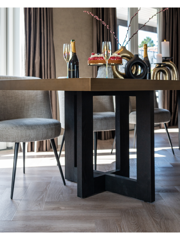 De Cambon tafel voegt direct warmte en karakter toe aan je interieur. Het donkere blad in de kleur dark coffee geeft een stijlvolle en luxe uitstraling, terwijl het robuuste metalen onderstel zorgt voor een stoere touch. Dankzij het royale formaat is deze tafel ideaal voor lange diners, gezellige avonden of productief thuiswerken. Een perfecte mix van elegantie, functionaliteit en modern design die in elke ruimte tot zijn recht komt.