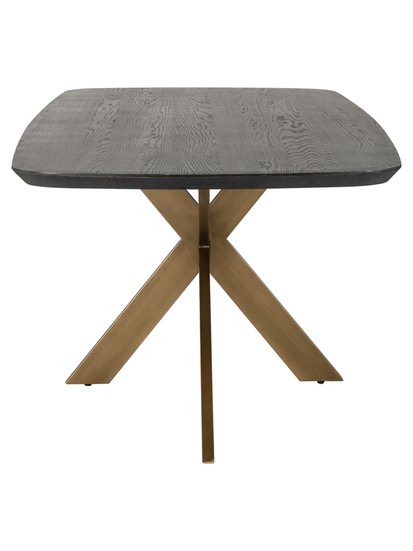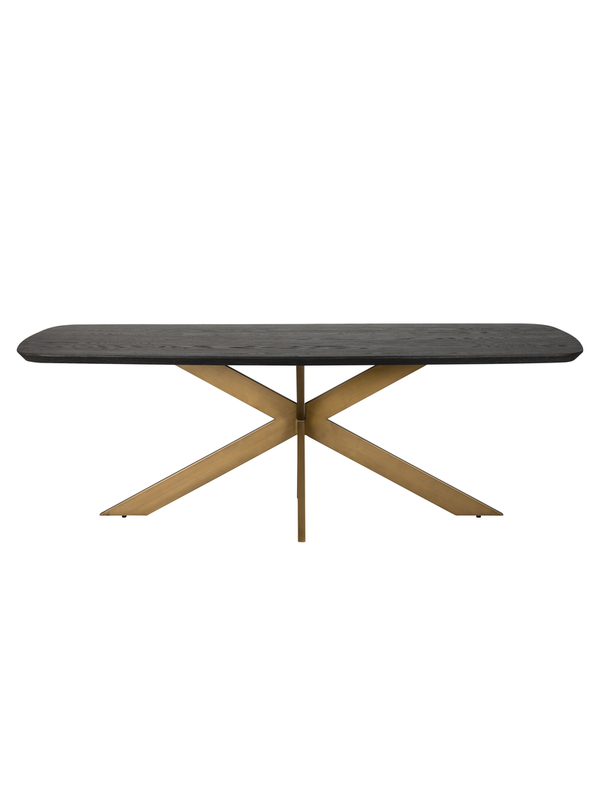 De Richmond Eettafel Cambon brengt luxe en warmte samen in één stijlvol ontwerp. Het donkere blad straalt klasse uit, terwijl het goudkleurige onderstel een moderne en chique touch toevoegt. Perfect voor lange, gezellige diners en een echte blikvanger in de eetkamer die moeiteloos sfeer en elegantie uitstraalt.