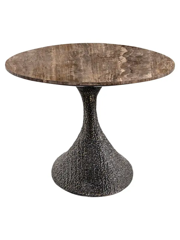De opvallende poot van aluminium heeft een elegante, organische vorm en geeft de tafel een modern en artistiek silhouet. De stevige constructie biedt stabiliteit, terwijl het verfijnde ontwerp zorgt voor een luchtige en speelse uitstraling.