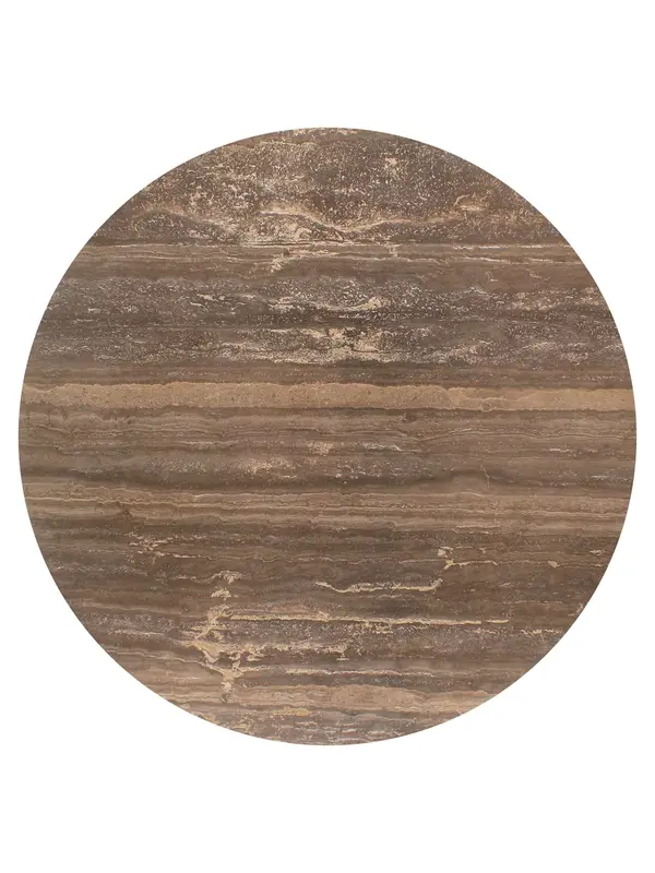 Deze prachtige ronde eettafel straalt rust, luxe en karakter uit. Het blad is vervaardigd uit travertin, een natuursteen met een warme, natuurlijke uitstraling en subtiele kleurnuances. De unieke tekening in het blad maakt iedere tafel bijzonder en geeft het geheel een uniek karakter.