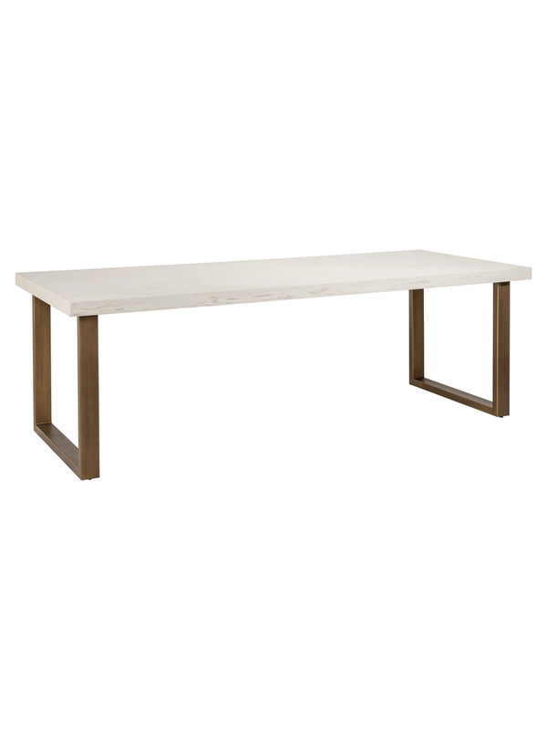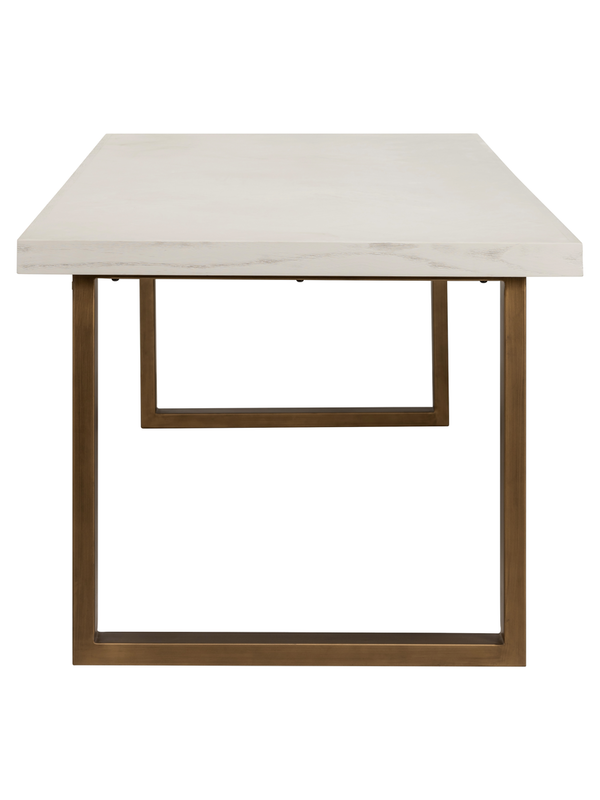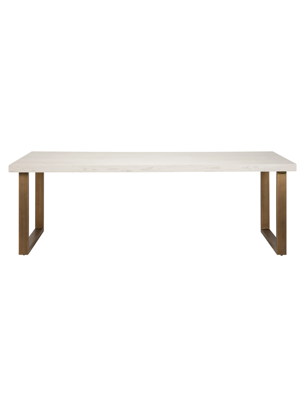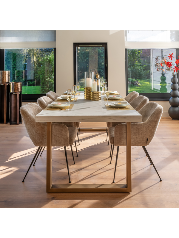Maak een statement in je eetkamer met de Whitebone eettafel van Richmond. Het royale blad in verona grey rust op opvallende U-poten met een warme bronskleurige finish, stoer en stijlvol tegelijk. Dankzij de lengte van 235 cm is er volop ruimte voor lange diners en gezellige avonden met vrienden of familie. De perfecte mix van modern design en tijdloze charme, en helemaal op z'n plek in een elegant interieur. Combineer hem met andere items van Whitebone voor een mooi geheel.