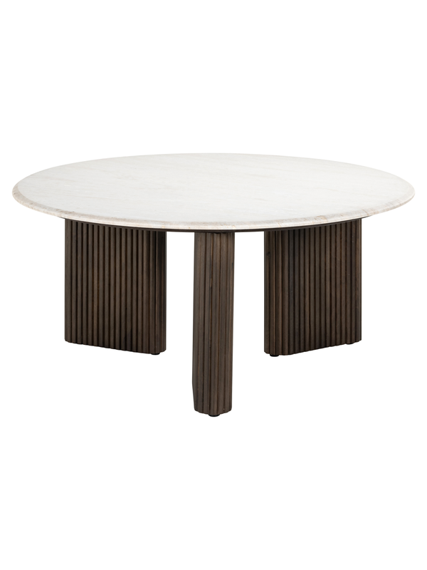 Salontafel Mayfield straalt pure elegantie uit. Het marmeren blad geeft een chique touch, terwijl de mangohouten voet zorgt voor een warme, natuurlijke look. Perfect om jouw zithoek een luxe én gezellige uitstraling te geven.
