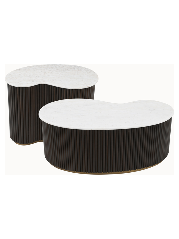 Tijdloos design met een moderne twist, dat is de salontafelset Mayfield van Richmond. Deze set van twee tafels straalt rust en verfijning uit dankzij de perfecte mix van wit marmer, warm mangohout en subtiele metalen accenten. De natuurlijke kleuren en ronde vormen sluiten prachtig aan bij de Japandi stijl en brengen harmonie in je interieur. Gebruik de tafels samen of apart en geniet elke dag van een luxe sfeer in je woonkamer.