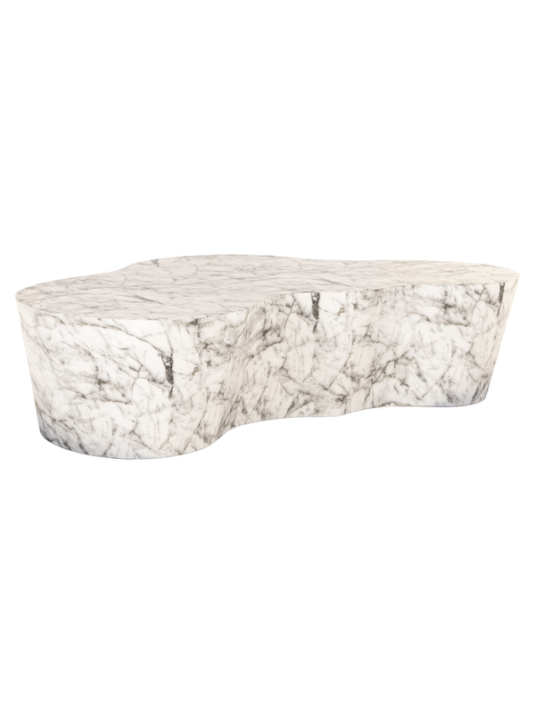 De Rockyard salontafel van Richmond Interiors heeft een luxe en moderne look. Met zijn witte marmeren look en minimalistisch design ademt deze tafel de rust van de Japandi-stijl. De luxe uitstraling en solide afwerking maken hem tot een echte blikvanger i