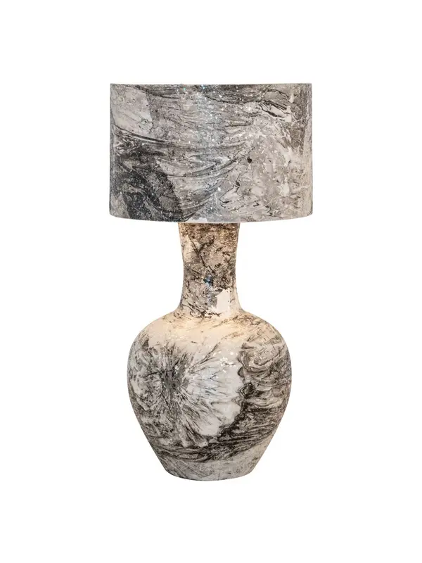 Tafellamp Cecile is een unieke lamp van ijzer met een luxe marmerlook. De combinatie van het robuuste metaal en de elegante afwerking zorgt voor een moderne en tijdloze uitstraling. Perfect voor op een dressoir, bijzettafel of nachtkastje en ideaal voor het creëren van sfeervolle verlichting in huis.