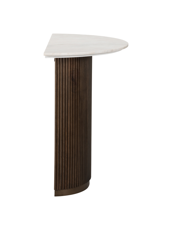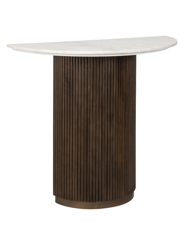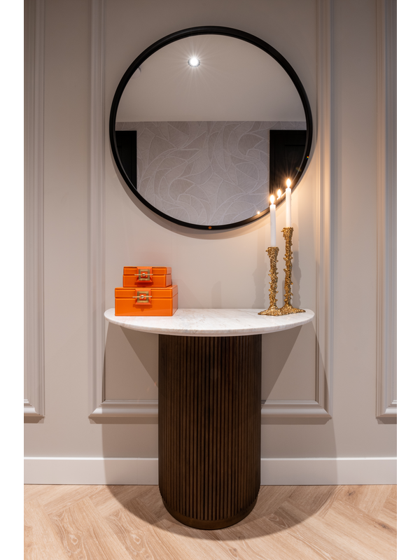 De Mayfield wandtafel tilt elke ruimte moeiteloos naar een hoger niveau. Het marmeren blad geeft een gevoel van luxe en natuurlijke schoonheid, met unieke aderen die van elke tafel een one of a kind maken. Of je haar nu plaatst in de hal, woonkamer of slaapkamer, Mayfield zorgt voor een verfijnde uitstraling en is net zo functioneel als stijlvol. Perfect als chique opberger of als podium voor je favoriete accessoires. Een subtiele blikvanger met karakter.