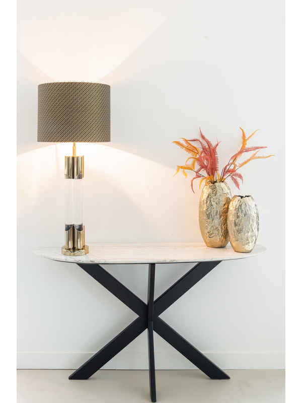 Liever iets dat écht opvalt? De Trocadero wandtafel van Richmond Interiors combineert een luxe wit marmeren blad met een strak metalen frame. Elke tafel is uniek dankzij de natuurlijke aders en kleurnuances in het marmer. geen enkel exemplaar is hetzelfde. Dit tijdloze design past perfect in de hal, woonkamer of slaapkamer en voegt meteen een stijlvolle touch toe aan je interieur. Compact, chique en elegant.