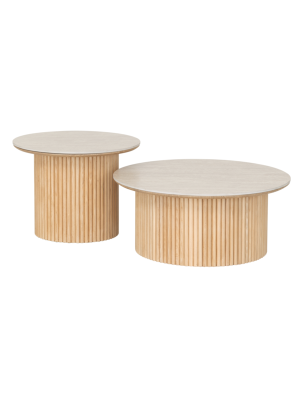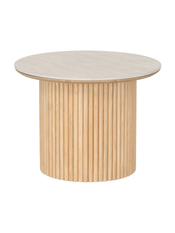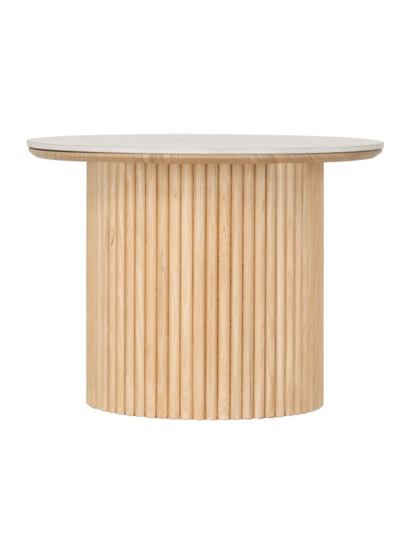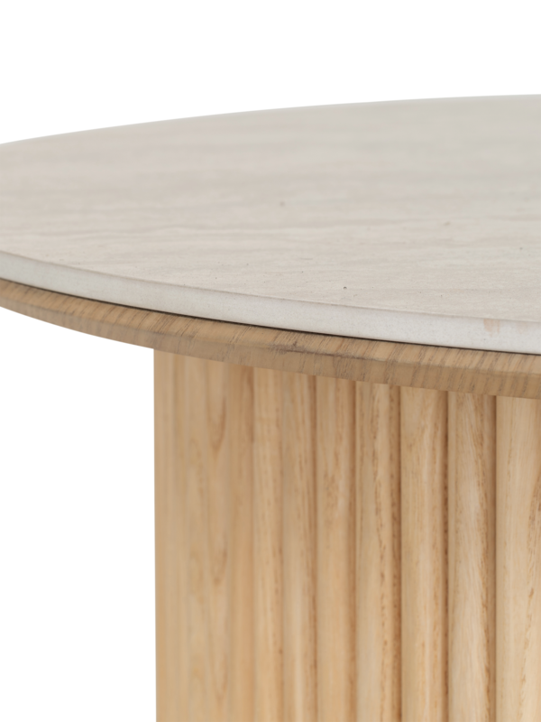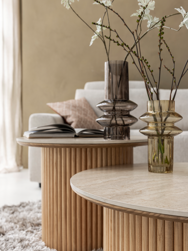 De halfronde houten latjes van tafel Dario zijn helemaal van nu. Ze zorgen voor een speels lijnenspel en een natuurlijke uitstraling die perfect past binnen de Japandi stijl.