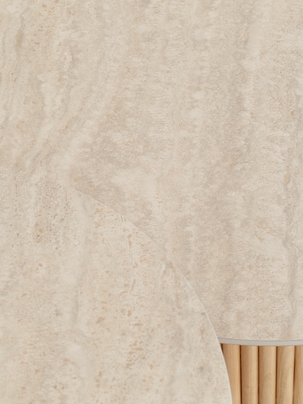 Het zandkleurige blad is gemaakt van sintered stone, een een innovatief en uiterst duurzaam materiaal. Dit wordt gemaakt door natuurlijke mineralen onder extreem hoge druk en temperatuur samen te persen tot een solide plaat. Het resultaat is een blad dat niet alleen prachtig oogt, maar ook uitzonderlijk sterk is. Het is kras- en vlekbestendig, hittebestendig en eenvoudig in onderhoud. Dankzij de hoogwaardige eigenschappen blijft Dario jarenlang mooi.