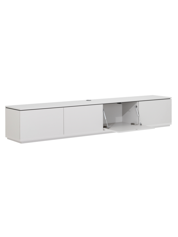 Tate is verkrijgbaar als staand model of in een hangende variant, afhankelijk van de beschikbare ruimte. Daarnaast is het meubel voorzien van een standaard gat voor snoeren, zodat je kabels netjes en onopvallend kunt wegwerken. Ideaal voor een opgeruimd en strak geheel.