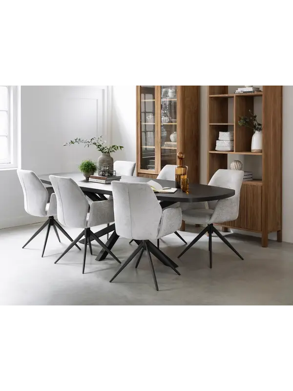 Met uitschuiftafel Manilla kan je letterlijk alle kanten op. Deze praktische eettafel combineert stijl met flexibiliteit en is ideaal voor zowel dagelijks gebruik als voor momenten waarop je extra zitplaatsen nodig hebt. Dankzij het handige uitschuifsysteem creëer je in een handomdraai meer ruimte aan tafel, zodat er gemakkelijk extra gasten kunnen aanschuiven.