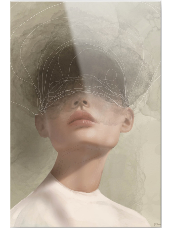 Met een glasprint voeg je warmte, sfeer en karakter toe aan elke ruimte. Glasprint Blind Mist toont een vrouwelijk silhouet, gehuld in zachte mist en abstracte lijnen.
