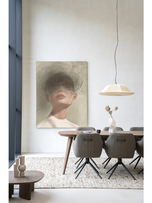 Met een wandkleed voeg je warmte, sfeer en karakter toe aan elke ruimte. Wandkleed Blind Mist toont een vrouwelijk silhouet, gehuld in zachte mist en abstracte lijnen.